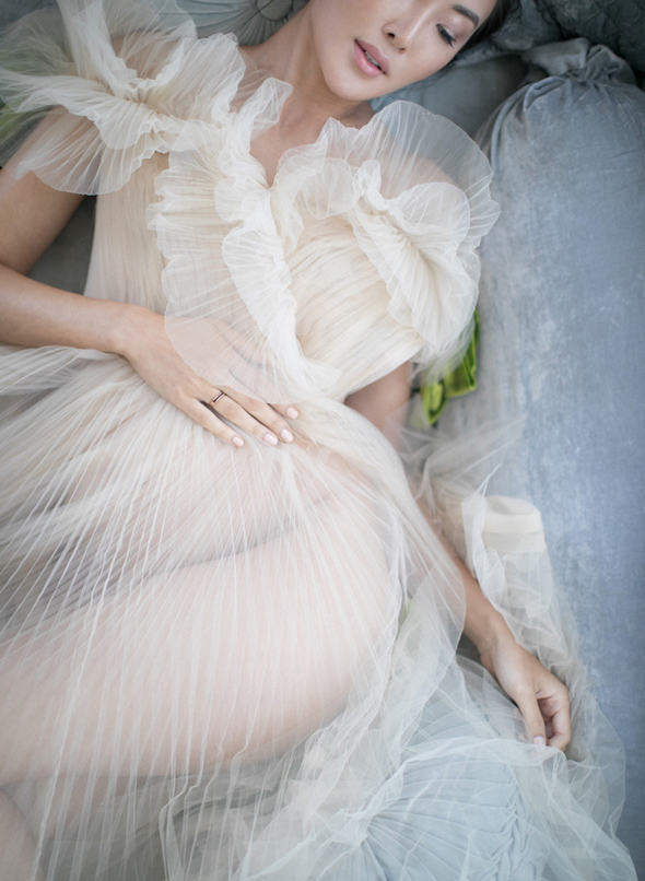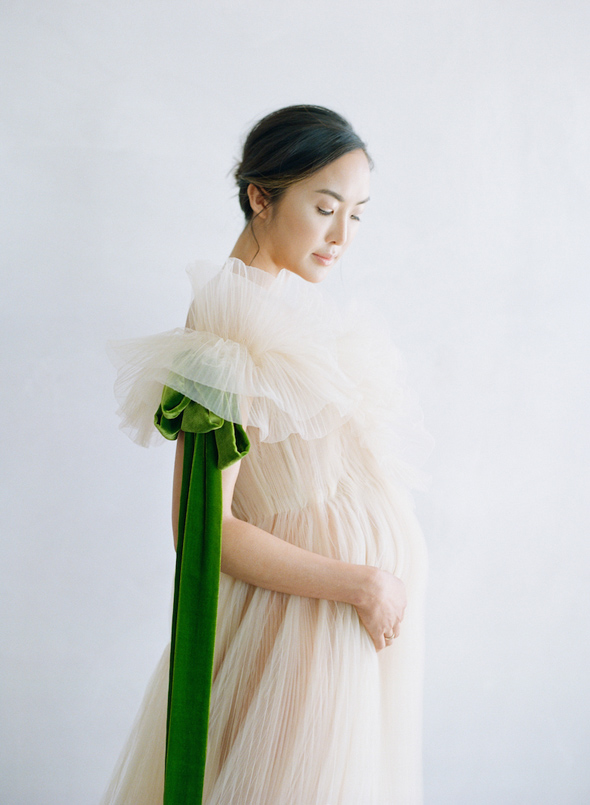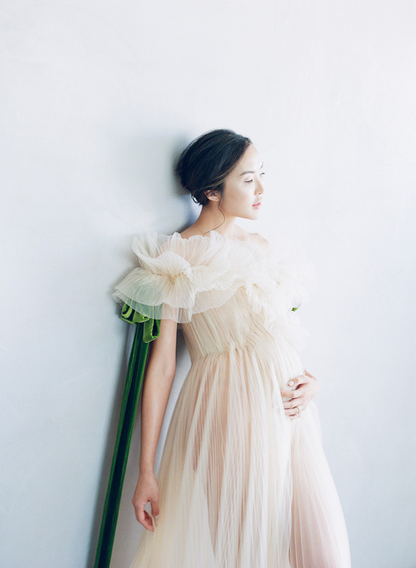 The details in our Swan Queen gown were beautifully captured on film and weaved together effortlessly with the ethereal mood of Chriselle's maternity shoot.