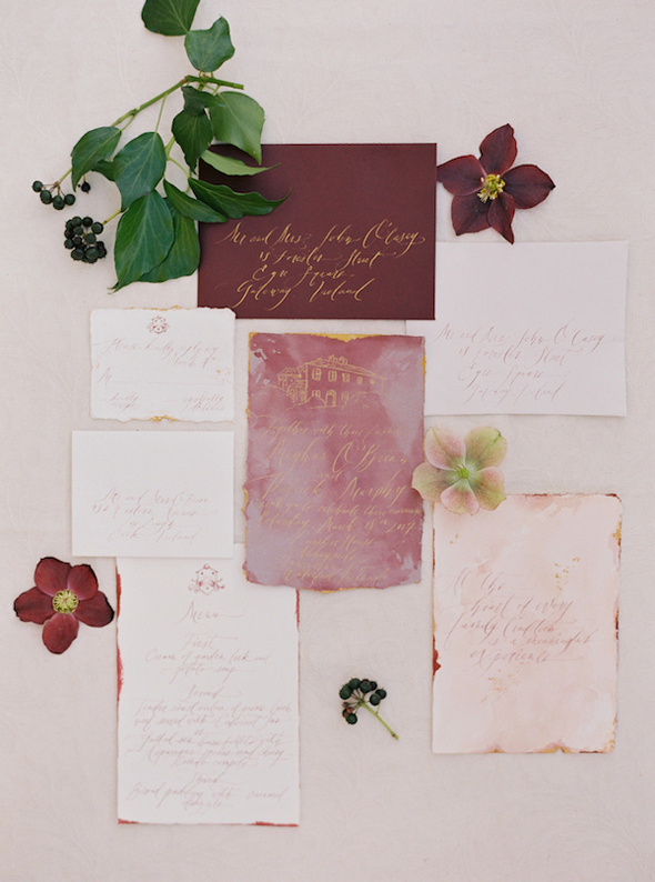 Photography: Amelia Johnson | Creative direction and styling: Pamela Barefoot Events | Floral design: Philippa Tarrant | Gown: Myrtle Ivory | Bridal Robe Girl and a Serious Dream | Ribbon: Pom Pom Blossom | MUAH: Hair Passion | Invitations: Julie Ha | Venue: Cairbre House | Linen: La Tavola | Rentals: Cater Hire Dublin | Charger: Select Event | Car: Cork Wedding Cars | Cake: Cove Cakes