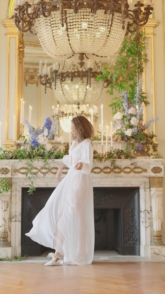 Primavera Silk chiffon and French Lace embroidered robe Something blue