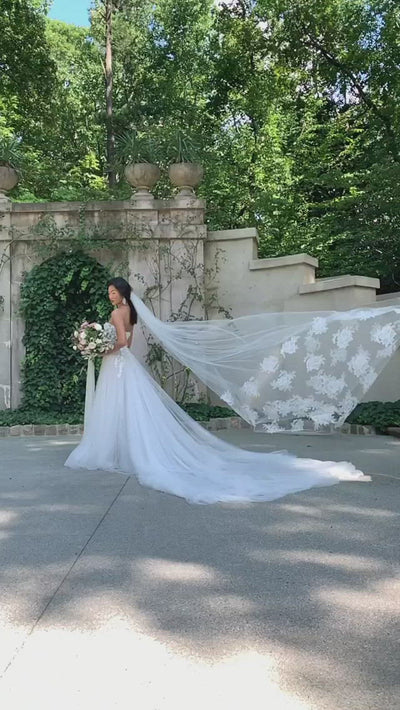 Video shows the Single-layer Cathedral 120" train. Available on Floor 80", Chapel 90", and Cathedral 108", and with a clean blusher.